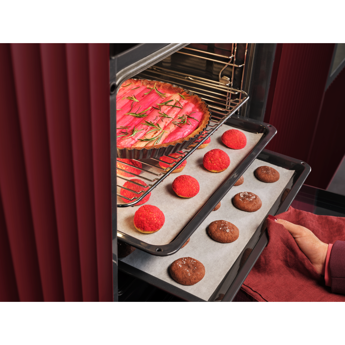 Universali 5000 serijos orkaitė „SurroundCook®“ su „SteamBake“ funkcija naudoja garus, kad iškeptumėte gardžiausių kepinių – iš išorės gelsvai apskrudusių, o viduje minkštų ir drėgnų. Be to, kiekvienas kepinys iškeps tolygiai, jo nereikės vartyti ar keisti skardos padėties.