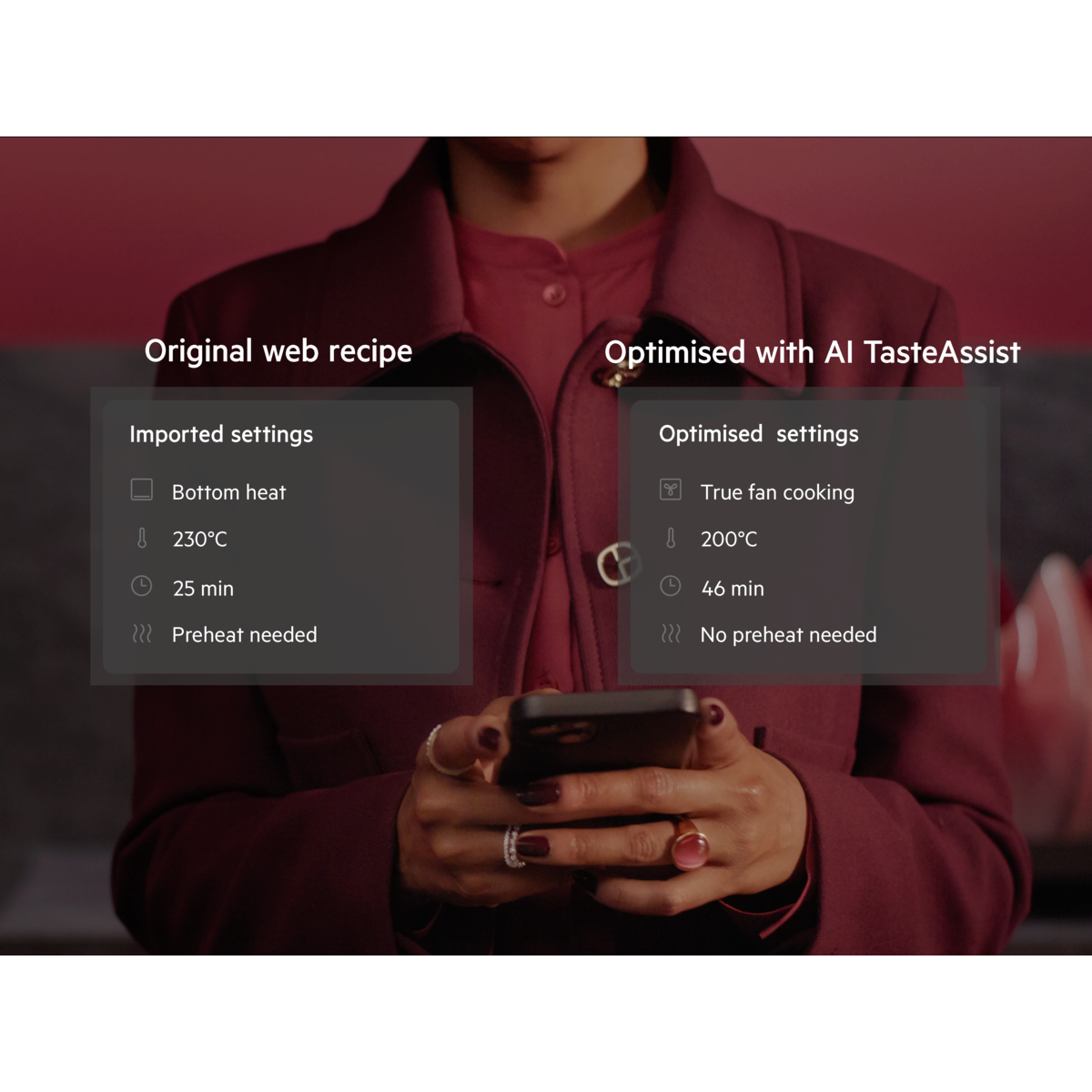 Nebereikia spėlioti – mėgaukitės visomis savo orkaitės galimybėmis su „AI TasteAssist“. Mūsų programėlėje nusiųskite internetinį receptą į orkaitę ir tegu dirbtinis intelektas optimizuoja trukmę, temperatūrą ir funkcijas, kad kiekvienas patiekalas būtų tobulai paruoštas.