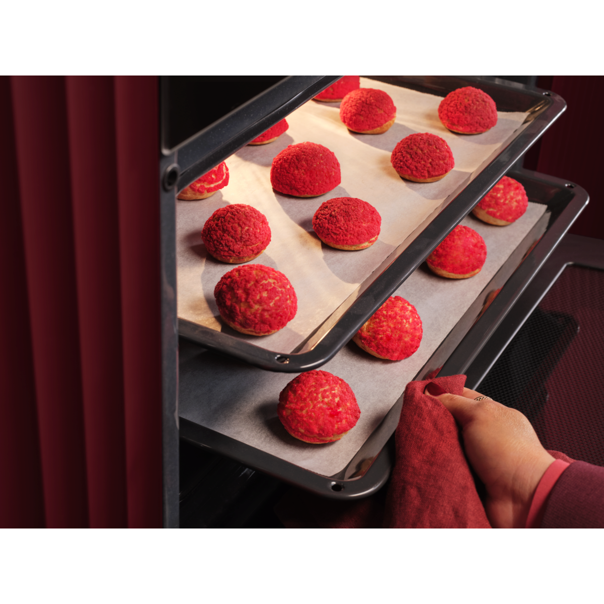 Netraukite orkaitės durelių už rankenos ir naudokite pirštines