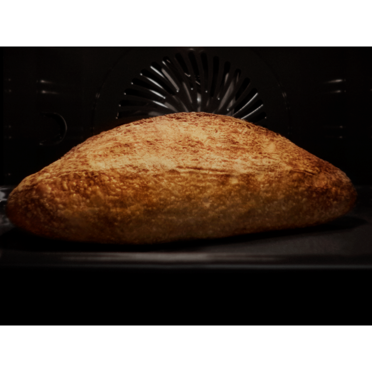 Universali 5000 serijos orkaitė „SurroundCook®“ su „SteamBake“ funkcija naudoja garus, kad iškeptumėte gardžiausių kepinių – iš išorės gelsvai apskrudusių, o viduje minkštų ir drėgnų. Be to, kiekvienas kepinys iškeps tolygiai, jo nereikės vartyti ar keisti skardos padėties.