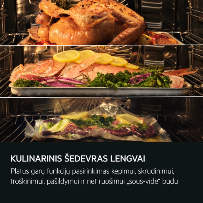 „SteamPro“ su gaminimo vakuume funkcija „sous-vide“ leidžia kepti, skrudinti, troškinti, pašildyti ir gaminti garuose, tiksliai kontroliuojamoje temperatūroje. „Steamify“ užtikrina tinkamą garų kiekį, kad jūsų patiekalai būtų traškūs ir gardūs bei išsaugotų iki 90 % vitamino C.