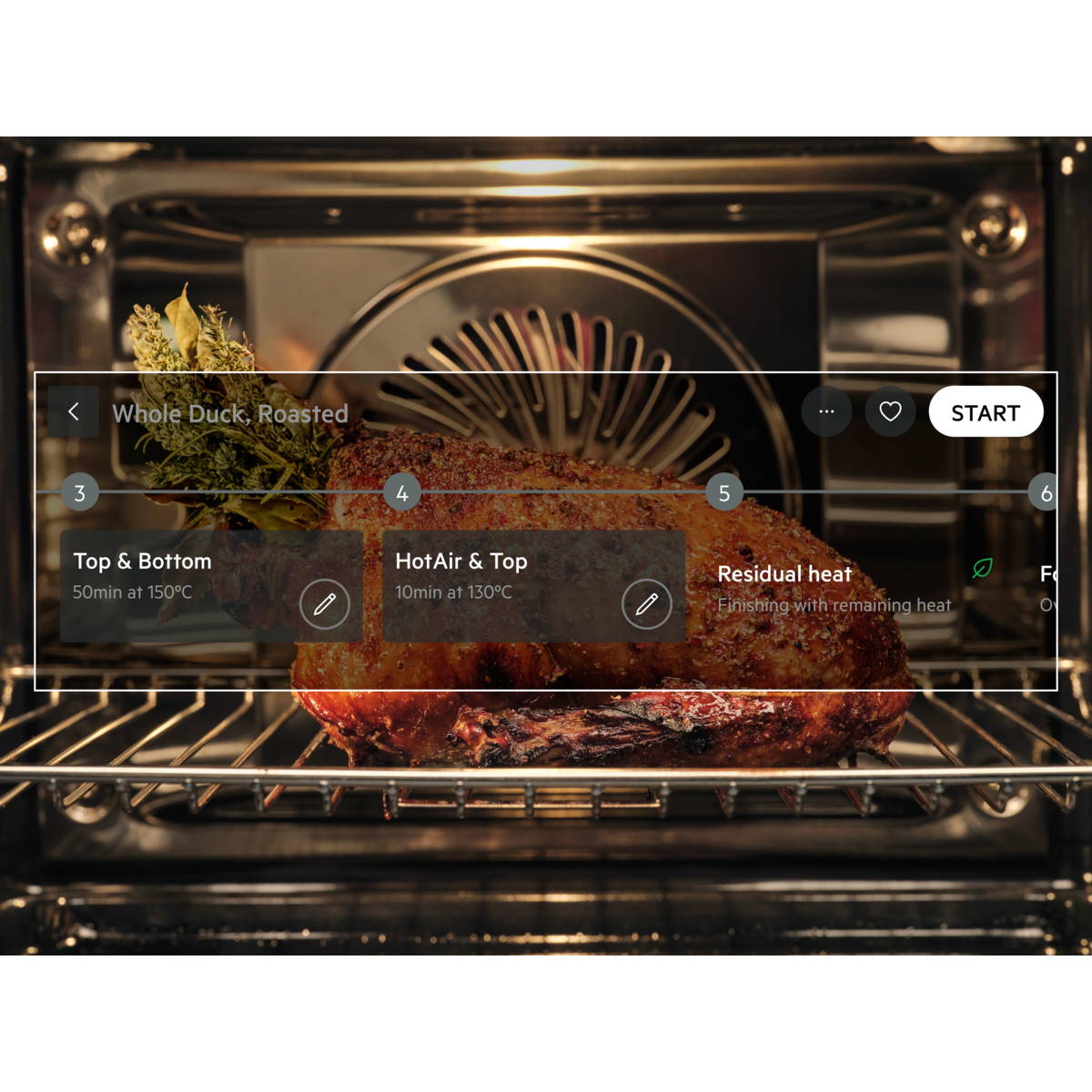 Vidutiniškai iškeptas kepsnys, garuose troškintos daržovės ar žuvis? Nepriklausomai nuo recepto, 9000 serijos orkaitė „ProAssist“ su „SteamPro“ leidžia mygtuko paspaudimu pasiekti puikių rezultatų. Ruošiant garuose pašildomi maisto likučiai, išsaugoma iki 90 % vitamino C ir sunaudojama mažiau energijos.