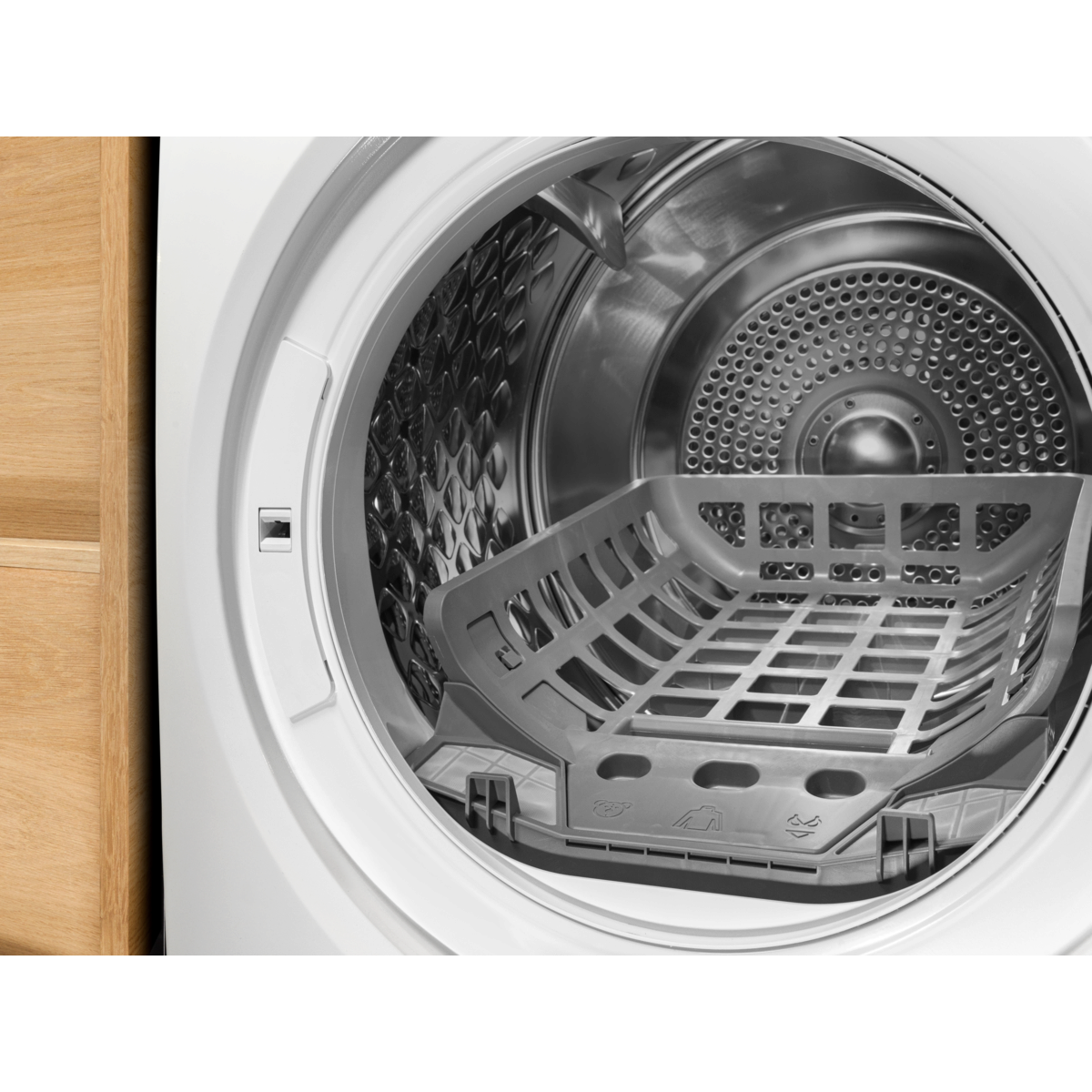 Džiovinimo krepšyje švelniai išdžiovinkite gležnus audinius jų negręžiant. Tiesiog įstatykite krepšį būgno viduje ir švelniai išdžiovinkite tokius skalbinius kaip vilnoniai megztiniai, šilko palaidinės, batai ar minkšti žaislai.
