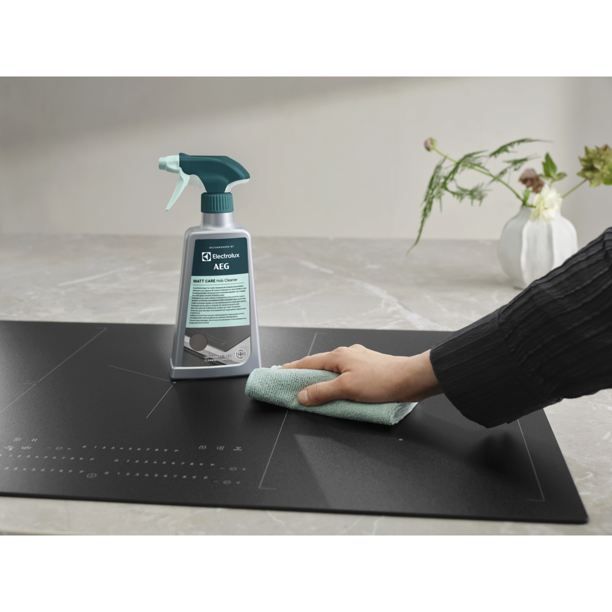 Kaitlenčių valiklis „Matt Care“ skirtas giliam matinių, stiklo-keraminių indukcinių kaitlenčių valymui, įskaitant „SaphirMatt®“ ir „SaphirMatt® SE“ kaitlentes*. Jis nuvalo sunkiai pašalinamus riebalus ir įsisenėjusius pridegusio maisto likučius, kad kaitlentės paviršius atrodytų lyg naujas.