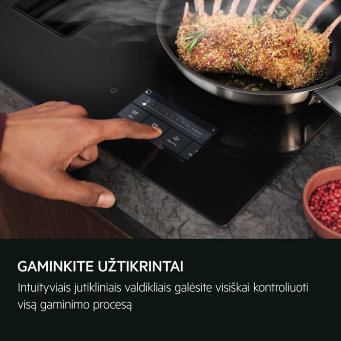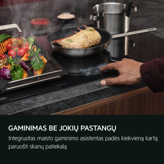 „AEG EcoLine“ indukcinės kaitlentės su integruotu gartraukiu parinktos pagal aukščiausią energijos efektyvumo klasę.