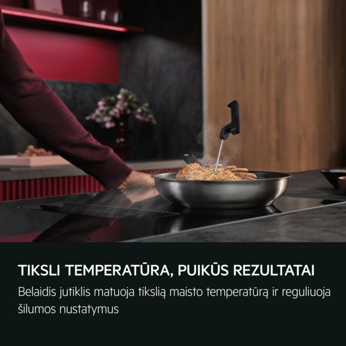9000 serijos „SensePro“ kaitlentė su gartraukiu turi optimalią oro cirkuliaciją užtikrinantį galingą gartraukį ir tiksliai ruošti maisto patiekalus padedantį belaidį maisto termometrą. Jis matuoja maisto temperatūrą ir automatiškai pakoreguoja nustatymus, kad karštis būtų tikslus – daugiau nebereikės spėlioti.