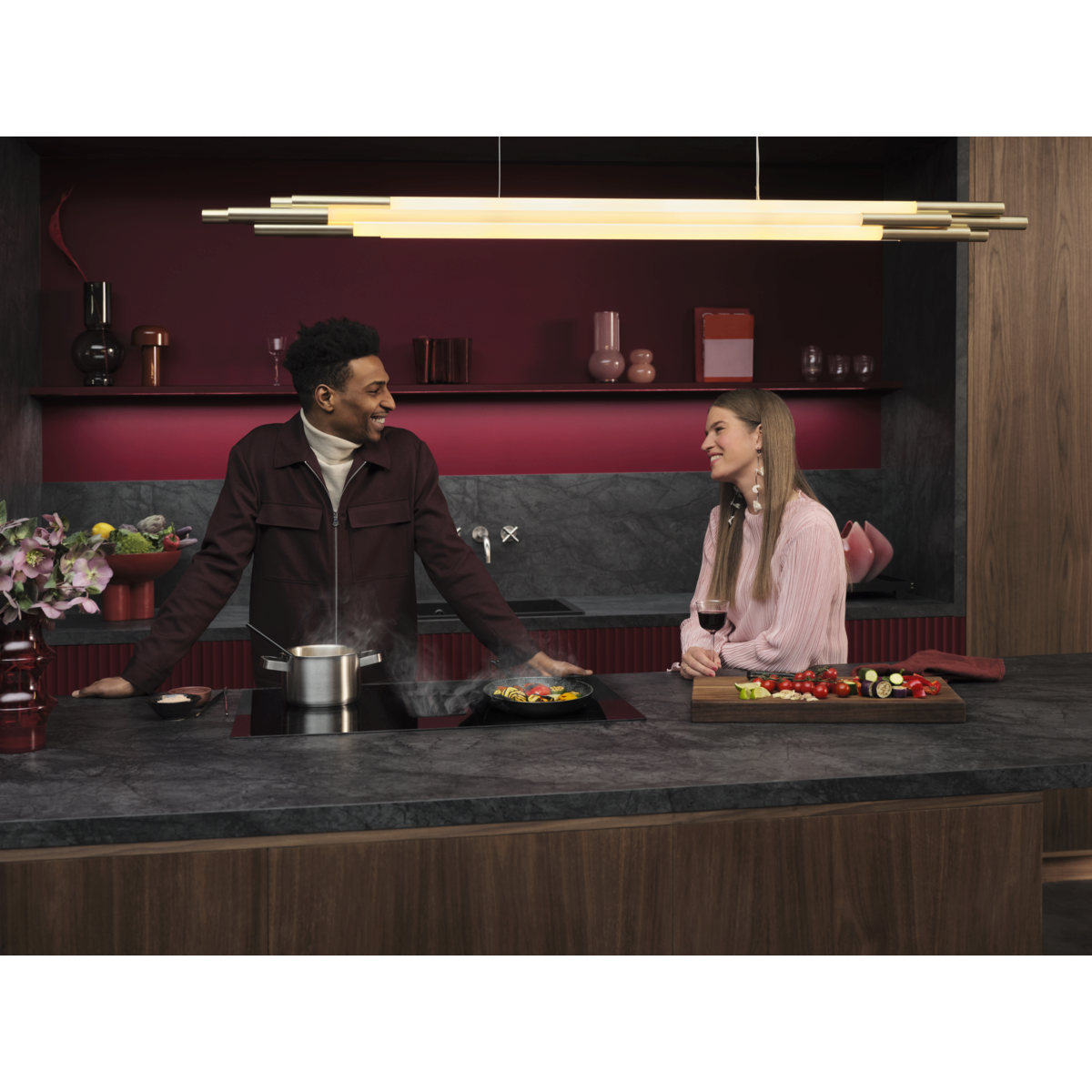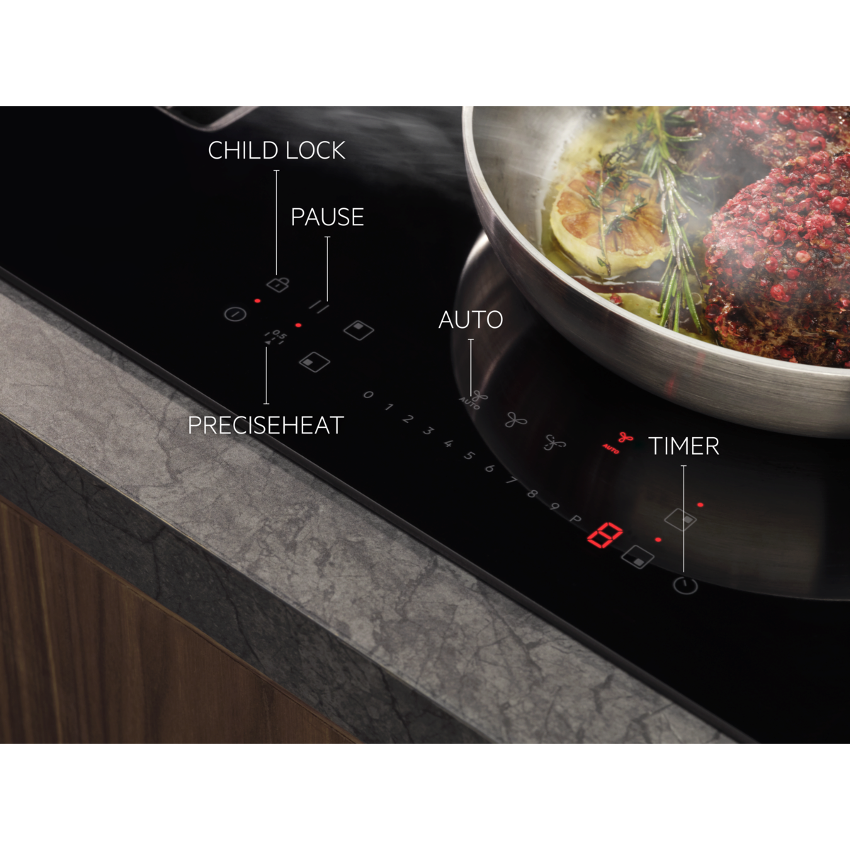 6000 serijos indukcinė kaitlentė „Bridge Extractor Hob“ turi integruotą galingą garų ištraukimo sistemą ir telpa 60 cm spintelėje. Taip pat ji turi „Bridge“ funkciją, dėl kurios dvi kaitvietes galima apjungti į vieną, kad galėtumėte gaminti didesniuose induose.