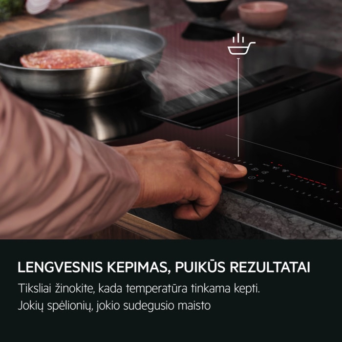 „AEG EcoLine“ indukcinės kaitlentės su integruotu gartraukiu parinktos pagal aukščiausią energijos efektyvumo klasę.