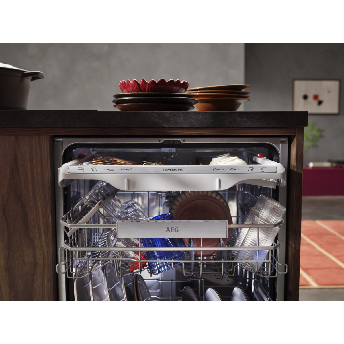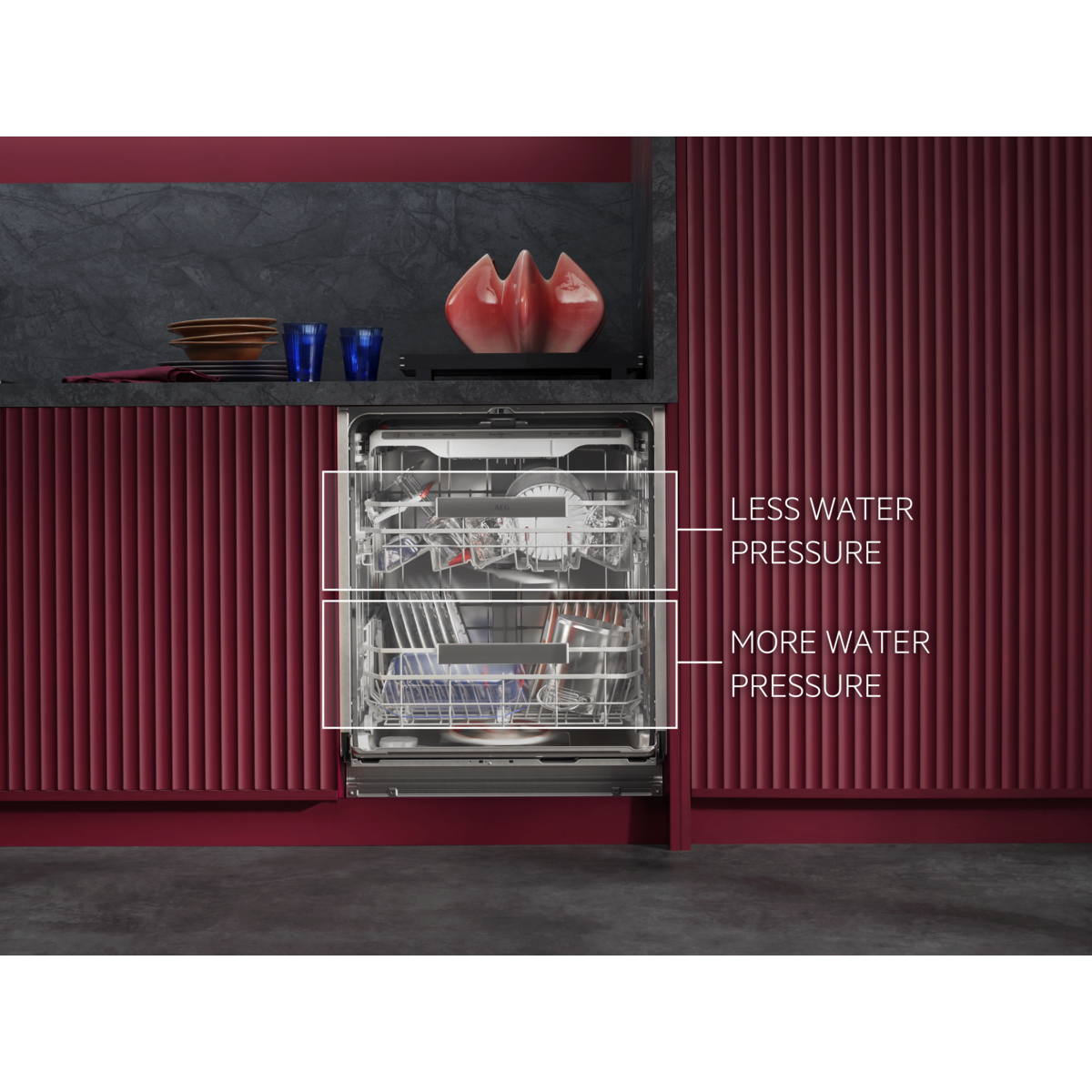9000 serijos prietaisai: daugiafunkciai, paslankūs krepšiai ir stalo įrankių stalčius. Laikikliai stklinėms ir padėklams saugiai pritvirtinti. Galingas plovimas pašalina prikepusius ar pridžiūvusius maisto likučius. Ypač efektyvi vandens sistema sunaudoja vos 8,4 l vandens.